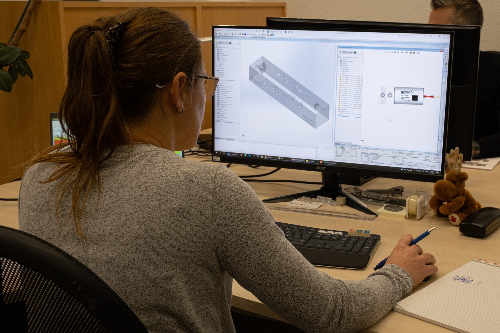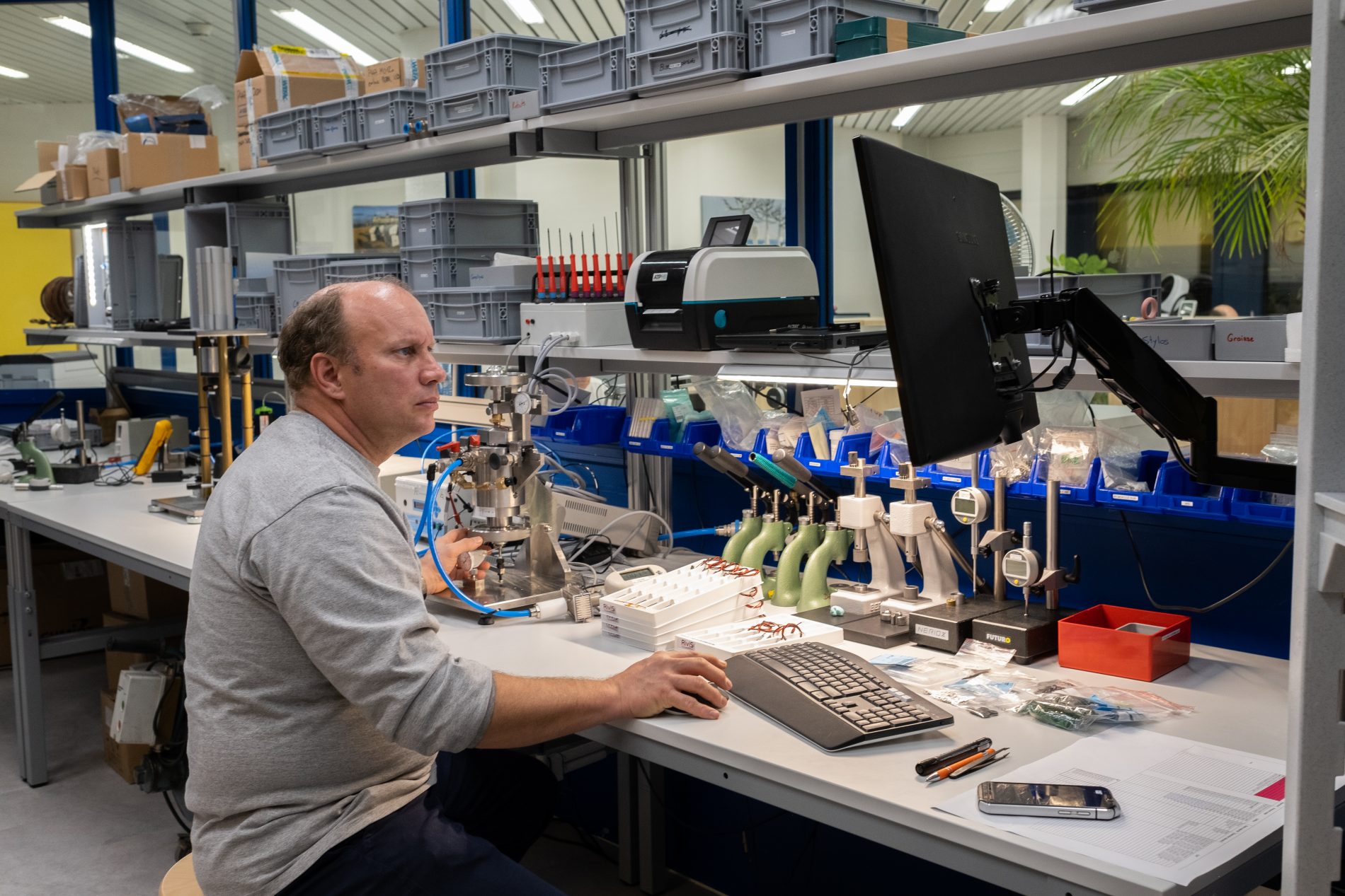 Pauline and Stéphane, designing, producing, and testing customized precision valves at our Fluid Control Division in Switzerland.
