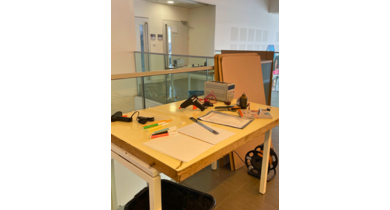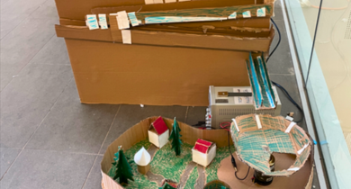 The 100 young people were grouped into ten smaller teams. Each team received the same assignment. Raw materials and components, including cardboard, hot melt glue, a motor, a solenoid, and more, were available. Their task was to plan and construct a marble run within a 3-hour.